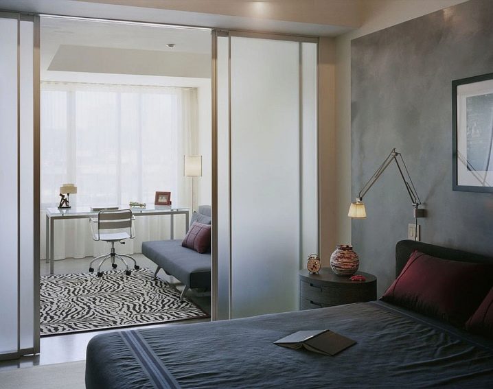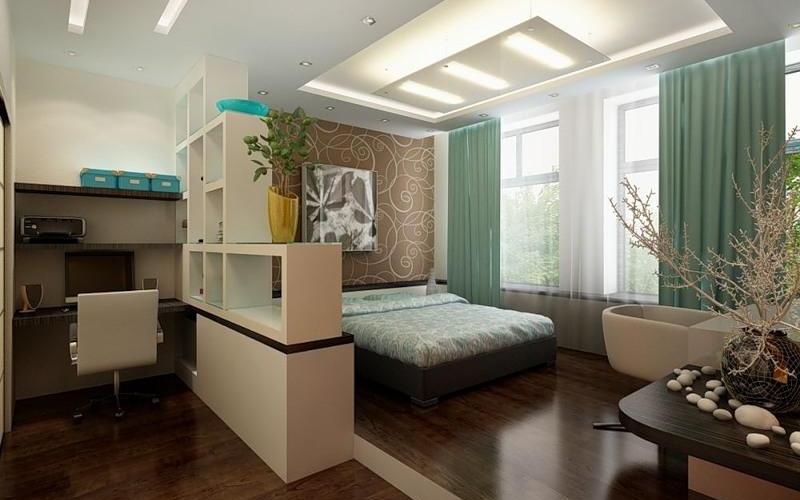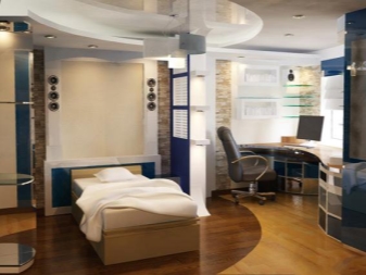 Si vous décidez d'aménager une chambre et un bureau dans une seule pièce, vous devez clairement tenir compte de l'intérieur et de l'emplacement de tous les objets. Pour cela, il est nécessaire de procéder à un zonage. Cela peut être fait avec l'aide de divers articles. Considérez les options principales: