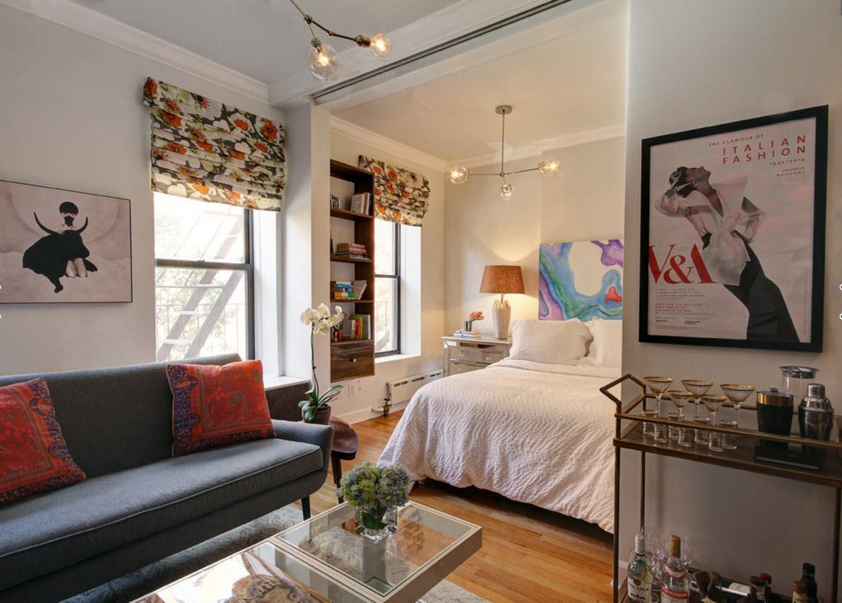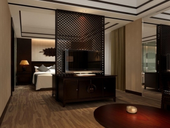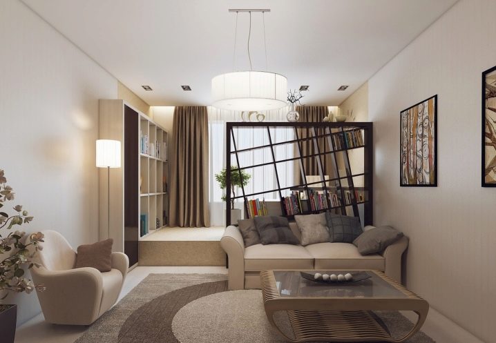 Vous pouvez également diviser les zones avec des meubles élégants. Vous pouvez choisir différents éléments de décoration qui décoreront votre espace et souligneront l'originalité.Cependant, dans tous les cas, vous devez suivre les mesures, ne pas jeter de déchets dans la pièce.