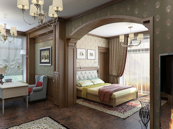 - Les arches De tels éléments aident à augmenter la fonctionnalité de la pièce. Ainsi, vous pouvez séparer visuellement une zone d'une autre.