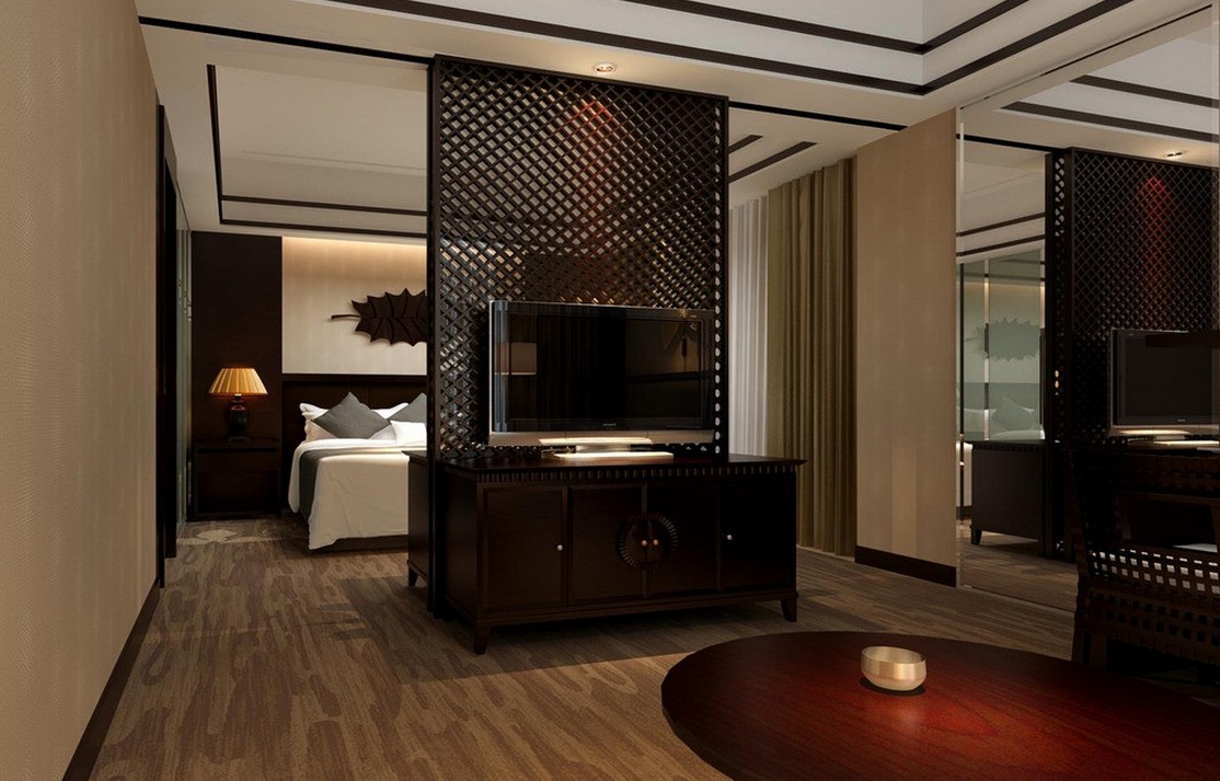- Dessins décoratifs. Ces éléments peuvent inclure des aquariums, des cheminées, diverses cloisons. En même temps, ils ne diviseront pas seulement les zones de la pièce, mais attireront également l'attention sur eux-mêmes grâce au design original. Si vous avez une pièce très modeste, vous pouvez utiliser des étagères comme partitions. Dans le même temps, sur les étagères, vous pouvez facilement placer des articles de papeterie, des livres et des photographies.