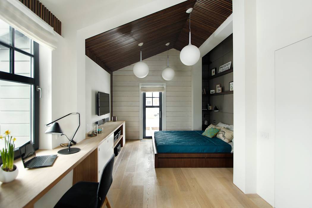 En ce qui concerne les nuances de chaque zone, vous pouvez choisir la même couleur. Ou inversement, vous pouvez utiliser des tons plus feutrés et délicats dans la chambre à coucher et mettre en valeur la zone de travail dans une couleur plus vive, sans pour autant voir la chambre à coucher.