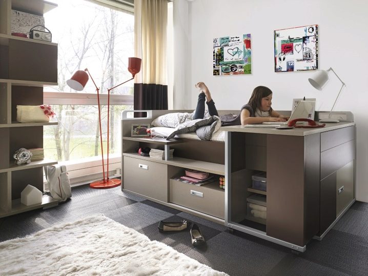Il semble intéressant et combiné lit avec une table. On trouve maintenant de tels lits transformants dans tous les magasins modernes. Ci-dessous, vous pouvez organiser, par exemple, vos livres favoris ou d’autres objets.