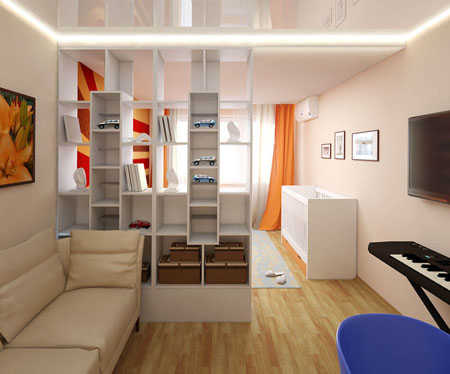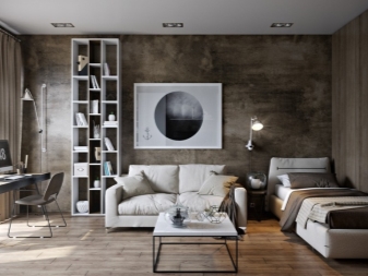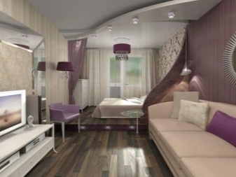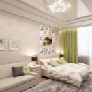 Il existe deux options pour planifier une chambre-salon. La première consiste à diviser la pièce en deux zones distinctes. La zone active est un salon. Vous pouvez y installer un canapé ou des chaises, une petite table mobile, du matériel vidéo et musical. La deuxième zone est la zone de repos et de sommeil. Dans cette zone se trouve un lit, un chevet ou une coiffeuse. De plus, la pièce doit tenir compte de l’éclairage et des espaces de rangement.