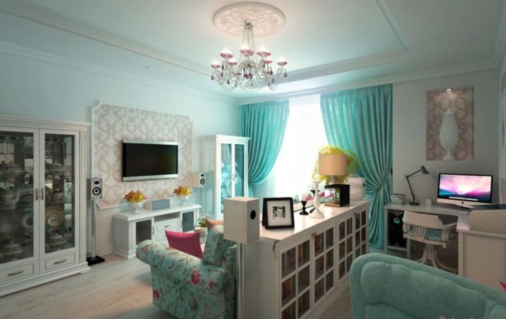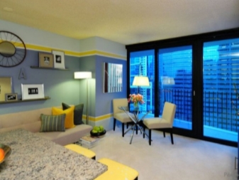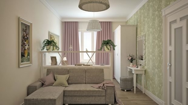 Dans les pièces à faible surface, il est recommandé d'utiliser des couleurs claires et douces dans la décoration. Si vous souhaitez introduire à l'intérieur des couleurs vives ou sombres, il est préférable de le faire en dose. Par exemple, mettez en surbrillance une des zones ou ajoutez de la couleur au décor de la pièce.