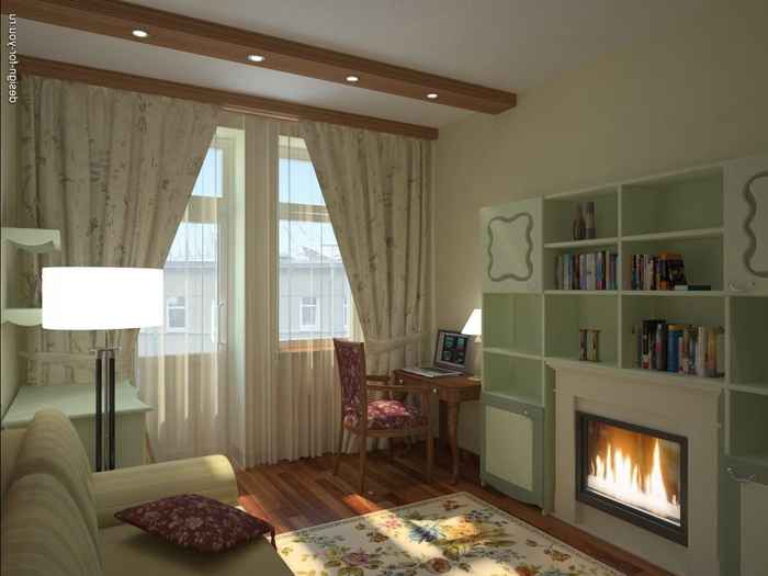 Le décor principal est le textile et l'éclairage. La décoration doit conserver le style général de la pièce et s'harmoniser avec la décoration et le mobilier. Les textiles sont mieux de choisir des matériaux naturels de lumière, des couleurs douces avec un beau motif.