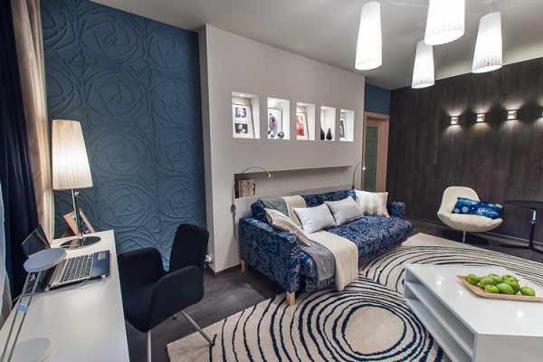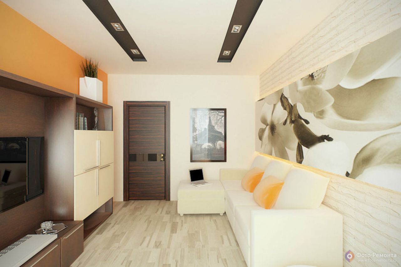 Salle de design 15 carrés. M. ne devrait pas être surchargé, car la pièce a une superficie assez petite et peut comporter jusqu'à deux fonctions principales d'utilisation.