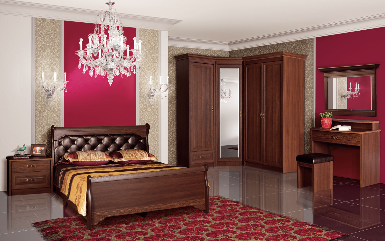 Les chambres de la marque sont très populaires. Ce sont les meubles complets qui permettent de meubler complètement la partie la plus intime de la maison. Des lits élégants, des armoires, des commodes, des tables de chevet et d’autres meubles, fabriqués dans le même style, créent une atmosphère unique de confort et de luxe.