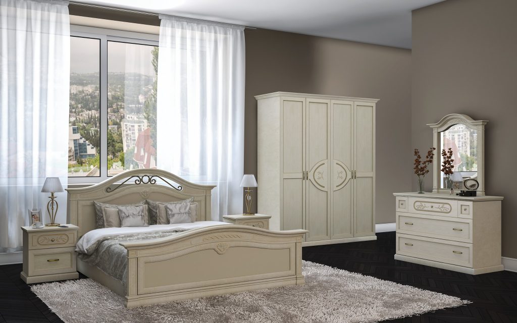 - Variété d'assortiment. Dans les collections de l'entreprise, il y a une option pour tous les goûts. Cette chambre concise dans un style moderne et élégant propose des options classiques. Et même les connaisseurs de meubles vintage peuvent acheter des articles de luxe pour leur chambre à coucher ici. La palette de couleurs comprend les nuances les plus sophistiquées. De spectaculaires meubles enneigés donneront à la pièce une atmosphère de fraîcheur. La nuance beige agréable ajoutera à l'intérieur de la chaleur et du confort. Le brun foncé semble particulièrement solide et noble, et le noir élégant crée une aura de mystère.