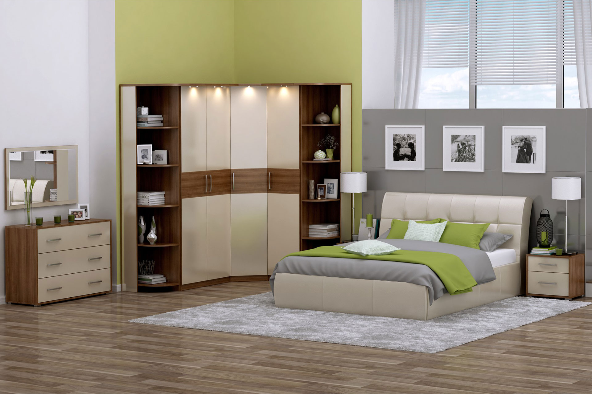 Ce micro-casque est conçu pour les connaisseurs du minimalisme moderne. Tous les articles de la collection sont compacts, concis, mais fonctionnels. Armoire spacieuse équipée de rétro-éclairé par LED. Une combinaison agréable de meubles en tons de sable et de noyer rendra la chambre discrète et confortable.