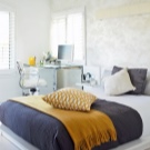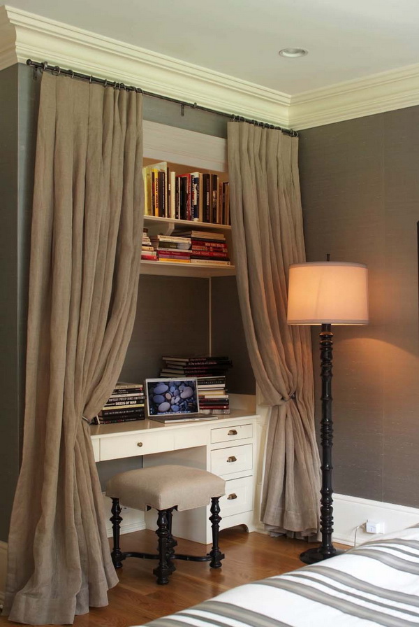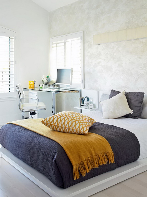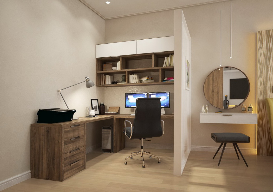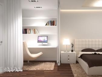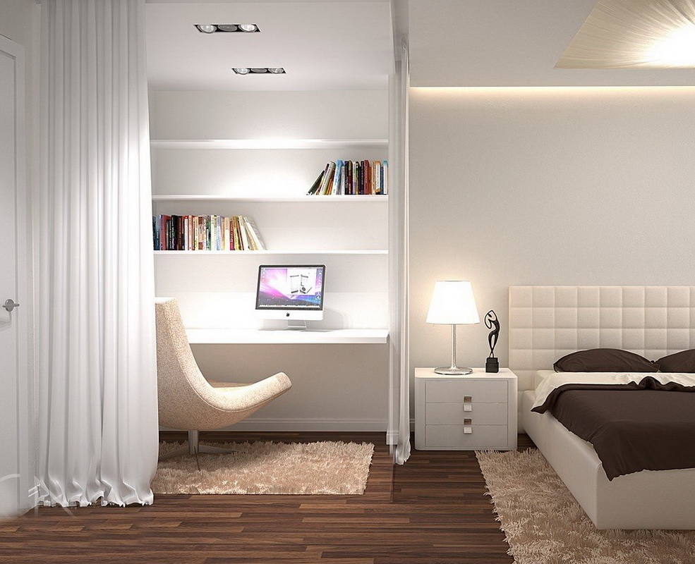 Les experts disent qu’il est important d’aménager les zones de travail et de couchage de manière à ce que le lit ne soit pas visible lorsque vous travaillez et que, avant de vous coucher devant vos yeux, il y a le moins de choses possible rappelant le travail. Suivant cette règle, un lit confortable et moelleux ne sera pas attiré dans ses bras pendant le travail, et il sera facile de dormir, car rien ne sera inachevé devant vos yeux. Pour ce faire, il est important de justifier l’étude d’un côté de la fenêtre et de l’autre de la fin du lit. Ainsi, la zone de travail sera bien éclairée et l’idée ne viendra pas toujours avec l’idée de se reposer.