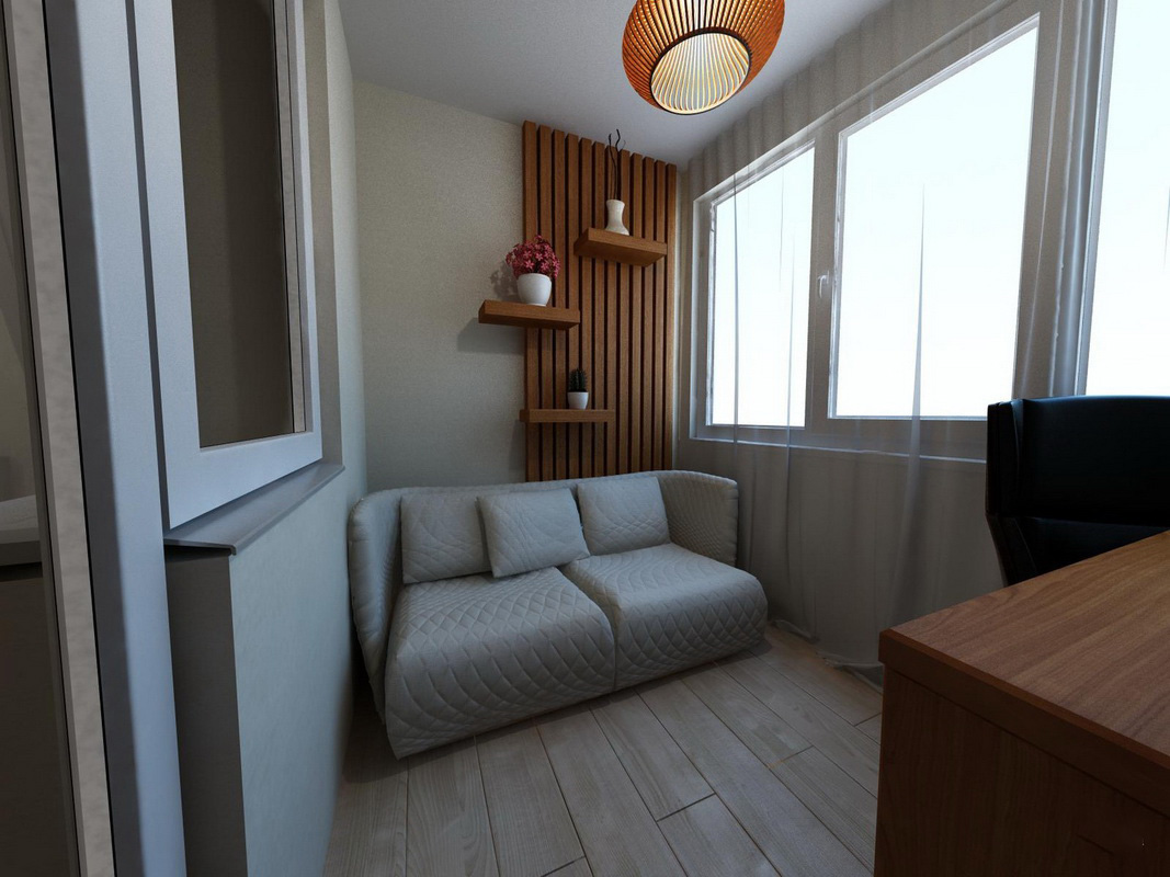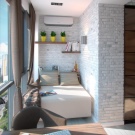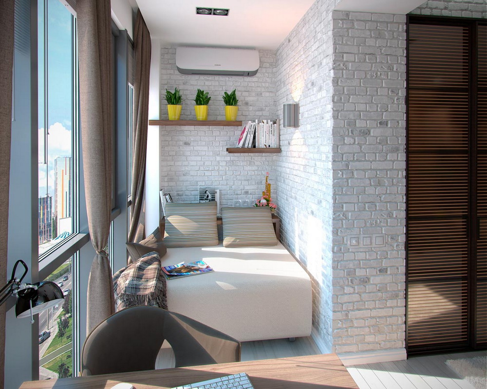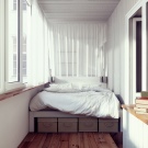 Un réaménagement entièrement nouveau et spacieux aidera à créer une loggia. Si sa superficie peut accueillir un lit, il peut s'avérer être une belle chambre, bien que petite. Il convient de noter qu'avant de tels changements, la loggia devrait être isolée qualitativement à l'aide d'un plancher chauffant, ce qui réduirait le nombre de fenêtres, le chauffage électrique et d'autres nuances.Une autre option serait de démolir le mur de la loggia et de le démanteler profondément dans l'espace principal de la pièce. Cela augmentera l'espace de la loggia étroite, après quoi vous pourrez profiter d'une chambre à coucher carrée à part entière.