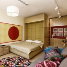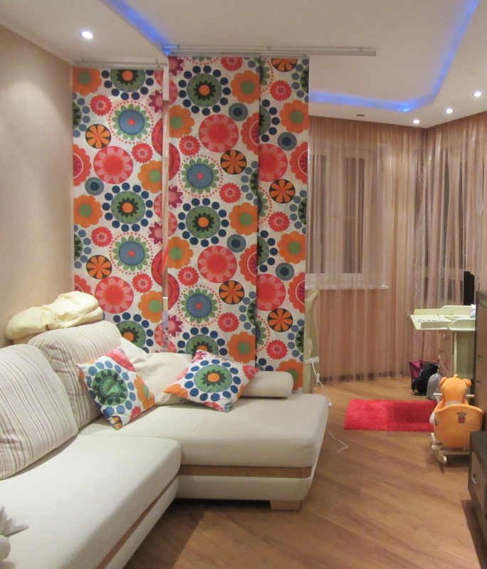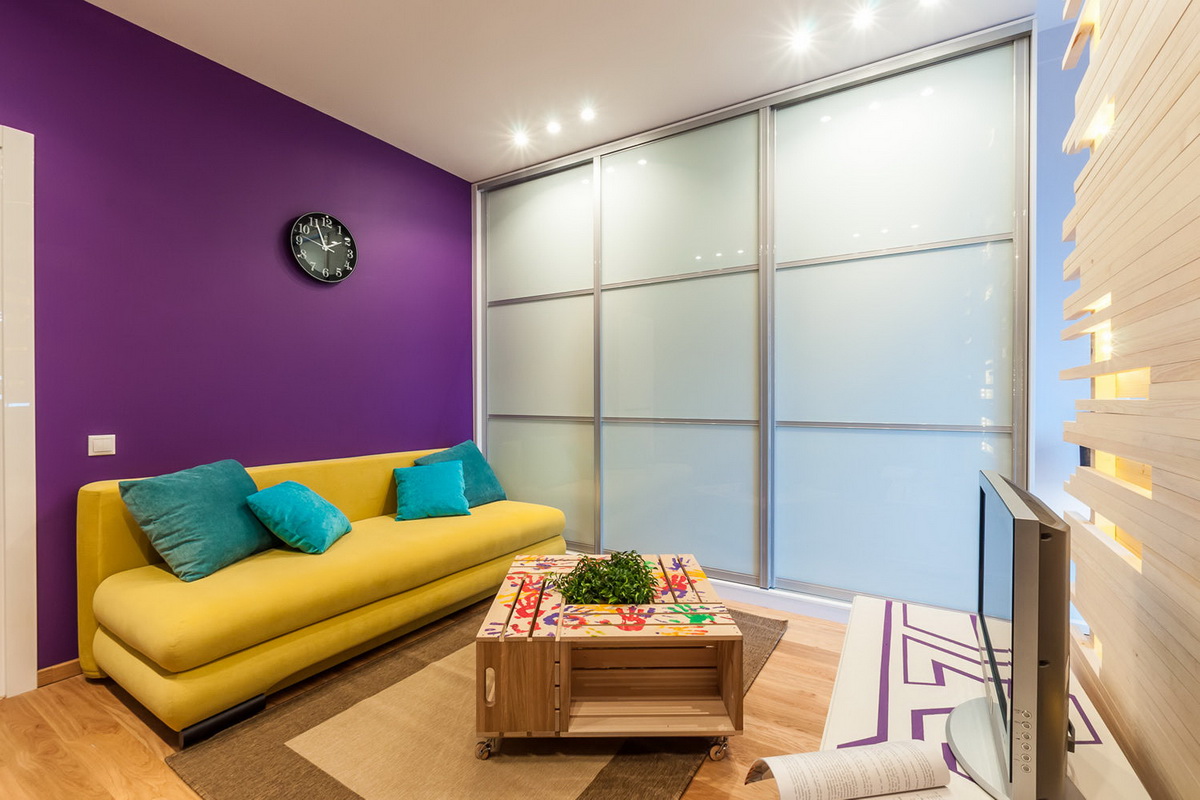 Cependant, il convient d'oublier les contrastes les plus éclatants si un salon combiné à une chambre d'enfants est soumis à un zonage. Ici, les principales couleurs claires doivent coexister avec des couleurs vives. Par exemple, un écran peint ou une cloison peut constituer un riche accent, complété par un petit tapis dans la chambre du bébé.