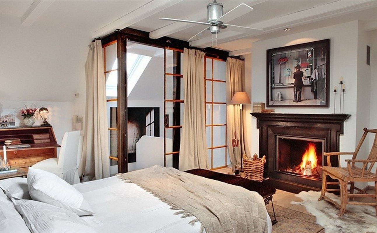 Avec style Grenier tout est un peu plus compliqué. Tout d'abord, nous notons que cela implique l'utilisation de matériaux naturels en parallèle avec le minimalisme. Des murs en bois ou en brique, un lit en chêne massif, une cheminée, du papier peint sous la forme de coupes rondes de rondins - tout cela est un style appelé Loft.