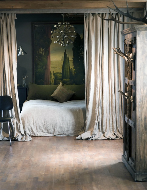 De tels contrastes d'éclairage ne seront pas perceptibles si les zones ne sont pas suffisamment séparées les unes des autres. Les cloisons, le blindage de la zone de couchage avec une étagère avec des livres, un écran ou un rideau sont des détails fondamentaux pour un bon éclairage.