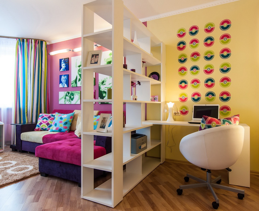 Un meuble idéal pour un appartement qui prend rarement la poussière sur les devantures de magasins.Le plus souvent, en combinant des zones, les utilisateurs doivent faire des cloisons de leurs propres mains et commander des meubles en tenant compte des dimensions requises. Et cela présente des avantages, car la taille du lit, du canapé ou de l’étagère correspondra parfaitement aux dimensions de l’appartement.