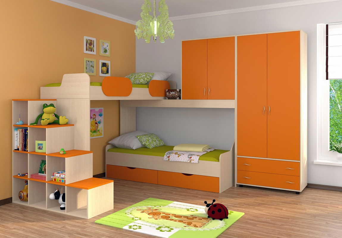 Un berceau, en passant, les concepteurs recommandent de choisir une couchette, même si un seul enfant habite dans l'appartement. Au deuxième ou au premier étage, il est facile d’aménager l’espace personnel du bébé, où il peut être seul avec lui-même ou s’amuser avec un ami. Par exemple, les lits populaires actuels se présentent sous la forme de maisons avec un toit et des murs réels.