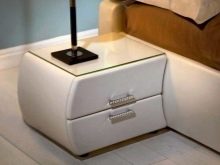 Pour ceux qui aiment les options complexes et originales, vous pouvez acheter des modèles forgés. Il sera intéressant de regarder à l'intérieur des produits en éco-cuir. Les tables de chevet en cuir ajouteront noblesse et raffinement à votre chambre.