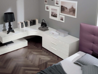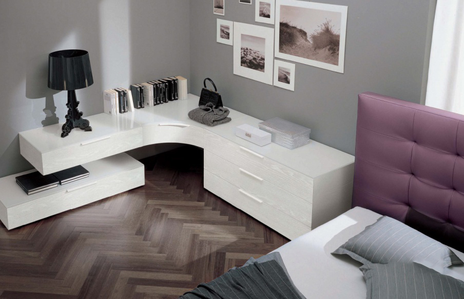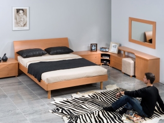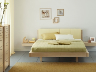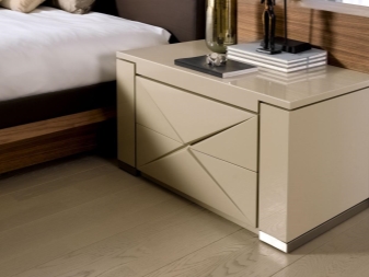 Il convient de noter que la hauteur de l'armoire doit être optimale. La hauteur du plateau doit être la même que celle du lit.Vous pouvez ainsi créer un concept de style organique pour la chambre à coucher. Dans le même temps, vous pourrez utiliser le mobilier lui-même.