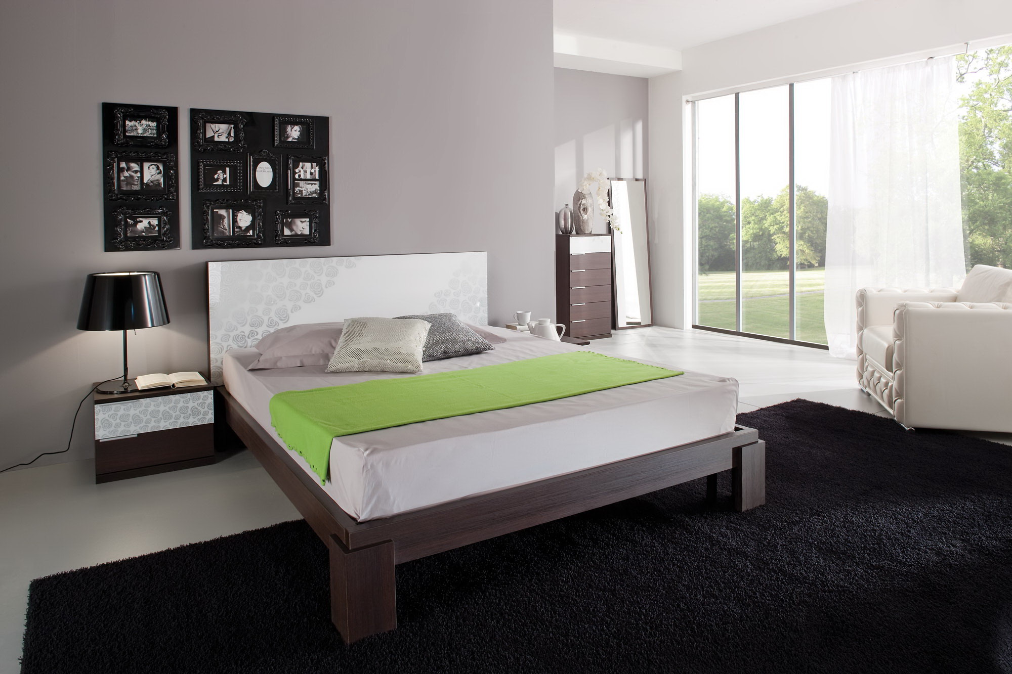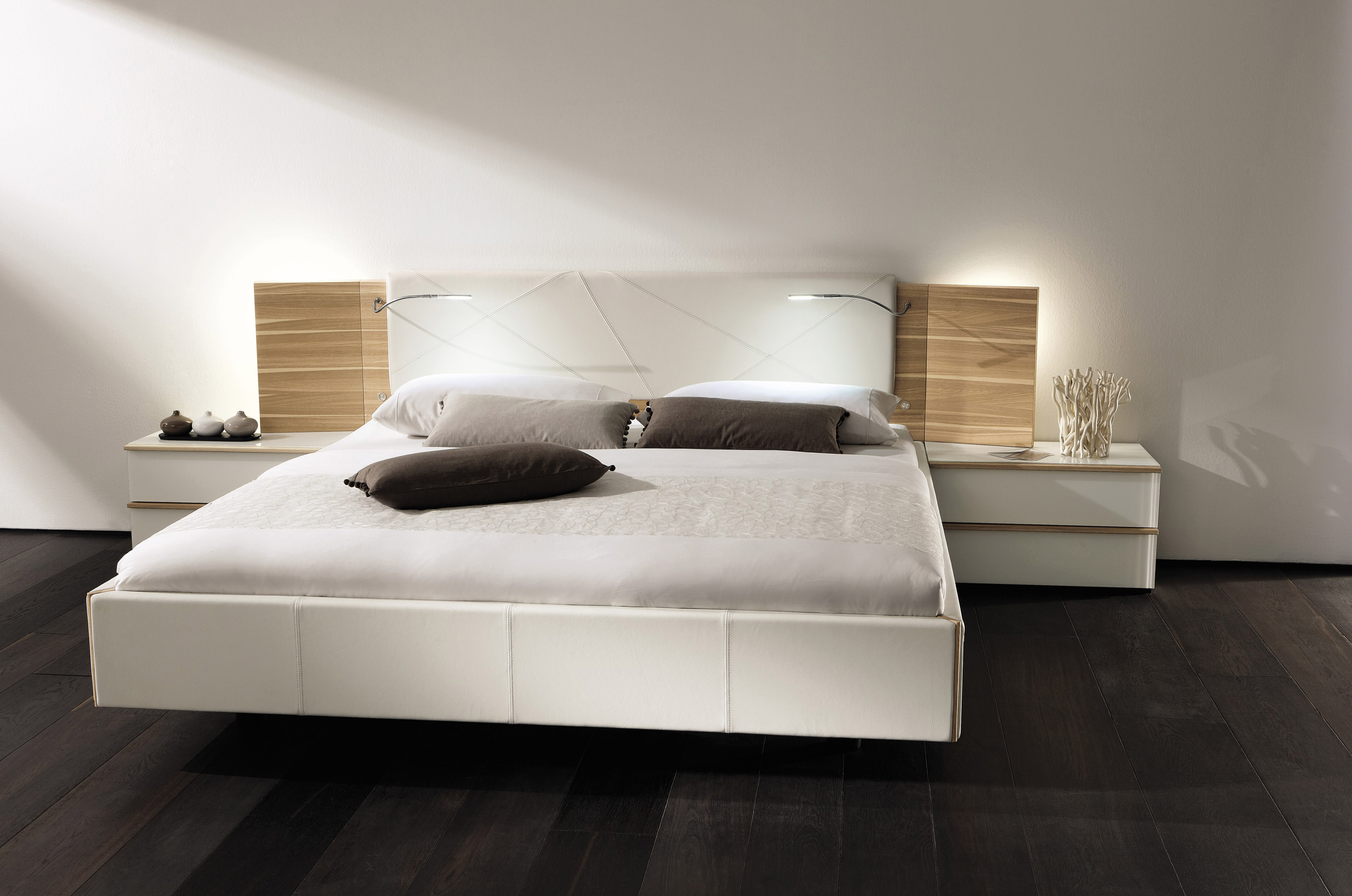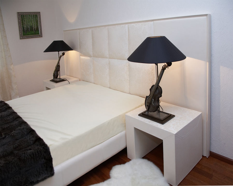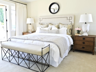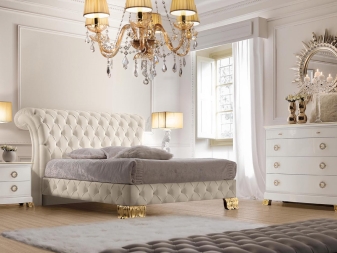 - Options élégantes. Le lit double sera transformé si vous placez un certain nombre de modèles de designers de chevet modernes à proximité. Ils sont assez beaux et seront le point culminant de votre chambre. Vous pouvez également faire correspondre les coffres qui complèteront la composition. Trouvez votre version originale avec un mode de réalisation.