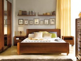 - Avec des étagères supplémentaires. Des étagères supplémentaires aideront à améliorer la fonctionnalité du modèle. Ils peuvent transformer l'apparence de la chambre à coucher. Généralement, ce sont des éléments décoratifs installés.