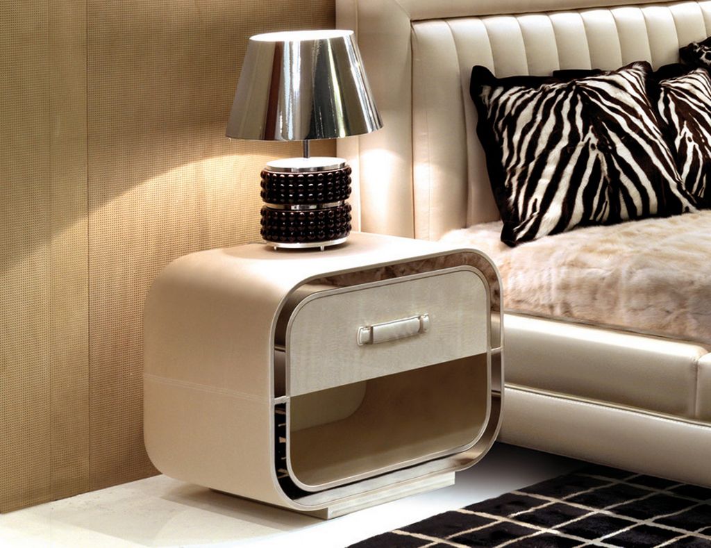 Il y a aussi des options qui ont le design le plus créatif. Des produits originaux apporteront individualité et positif à votre maison. Ils peuvent être doux ou durs, avoir un design créatif, avoir un décor élégant. Il y a par exemple une table de chevet originale avec une surface en miroir. Il aura l'air bien et avantageux à l'intérieur dans un style high-tech.