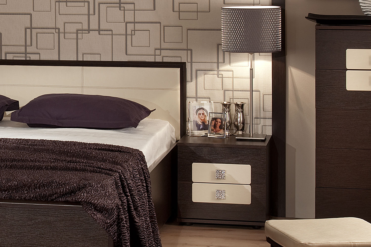 Vous pouvez également choisir des tables de nuit noires. Ils sont faciles à nettoyer. Cette saison est pertinente et la couleur du wengé. En général, les nuances naturelles ne semblent jamais démodées.