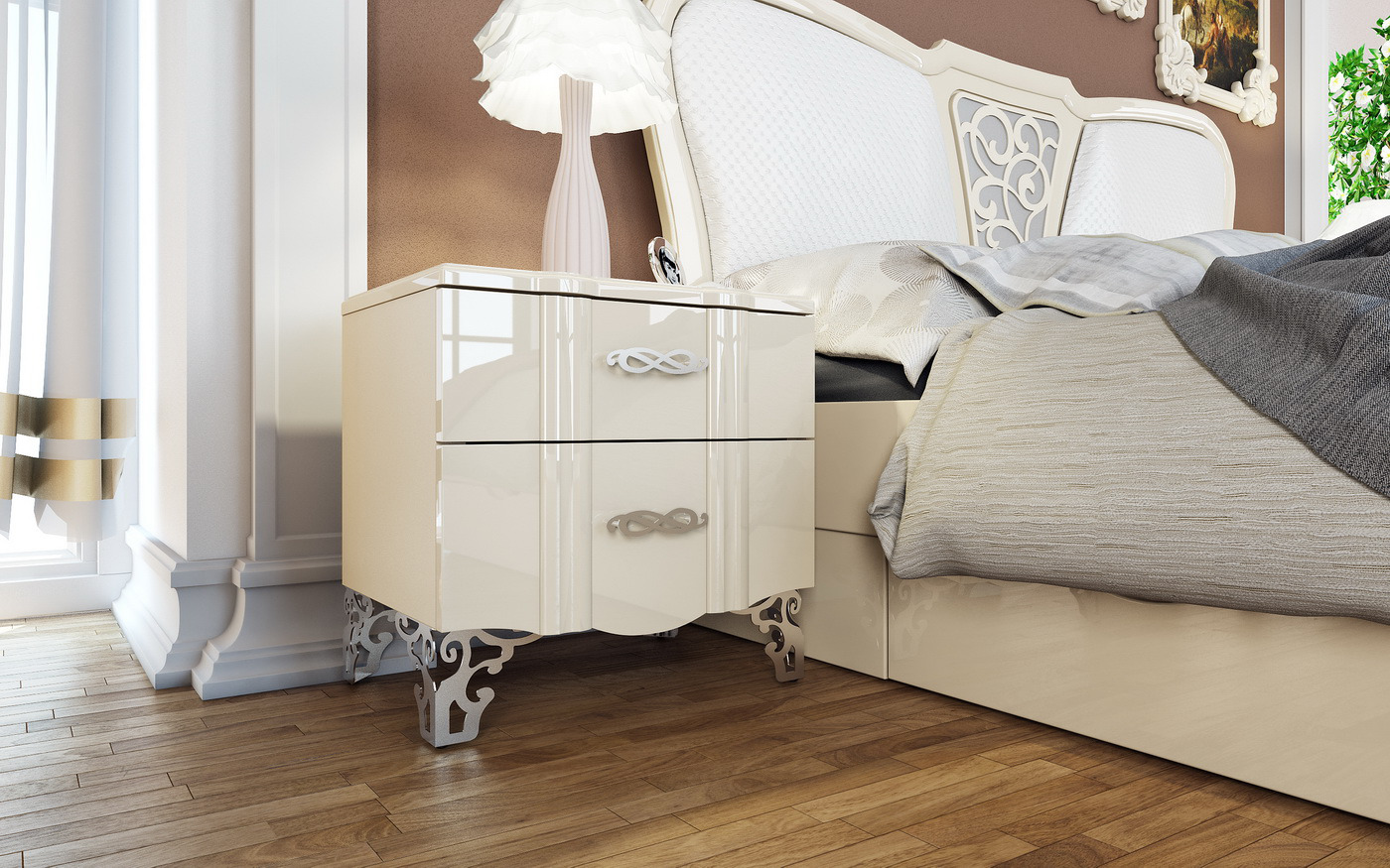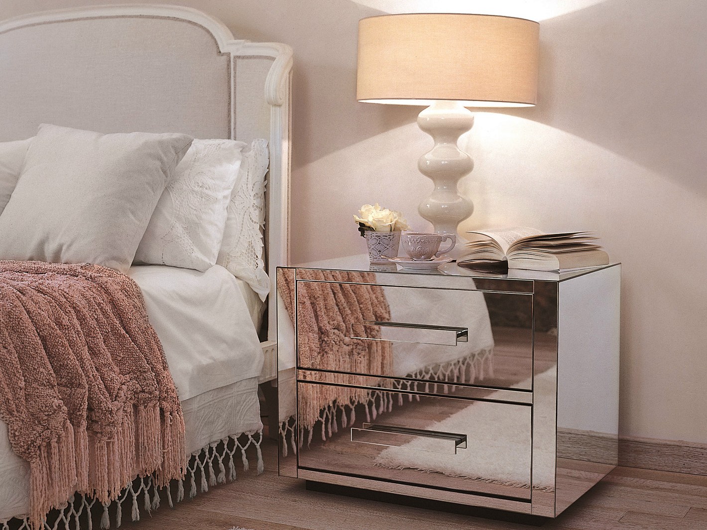 Les produits en verre sont tout aussi populaires. Ils contribueront à donner à votre chambre l’originalité et à souligner le style choisi. Les tables de chevet, où il y a une surface miroir, sauront agréablement surprendre vos proches.