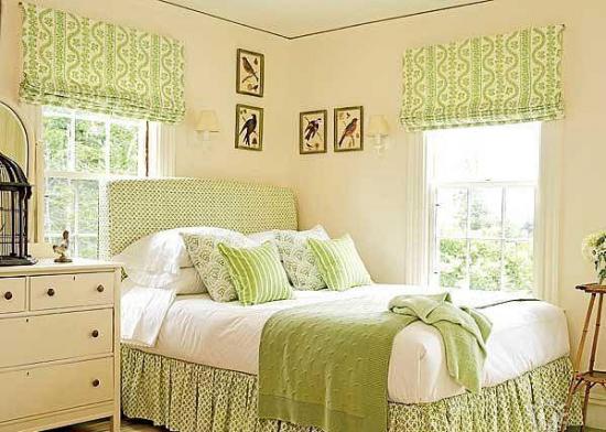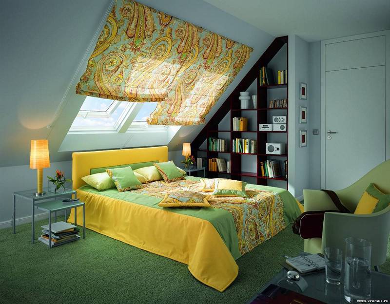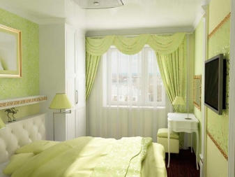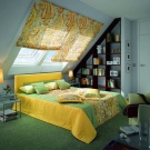 Une excellente solution pour une petite pièce - stores romains ou à rouleau. Ils ne prennent pas de place, ils s'effondrent pendant la journée et ont une densité suffisante pour que, même pendant la journée, vous puissiez dormir dans une agréable demi-obscurité.