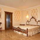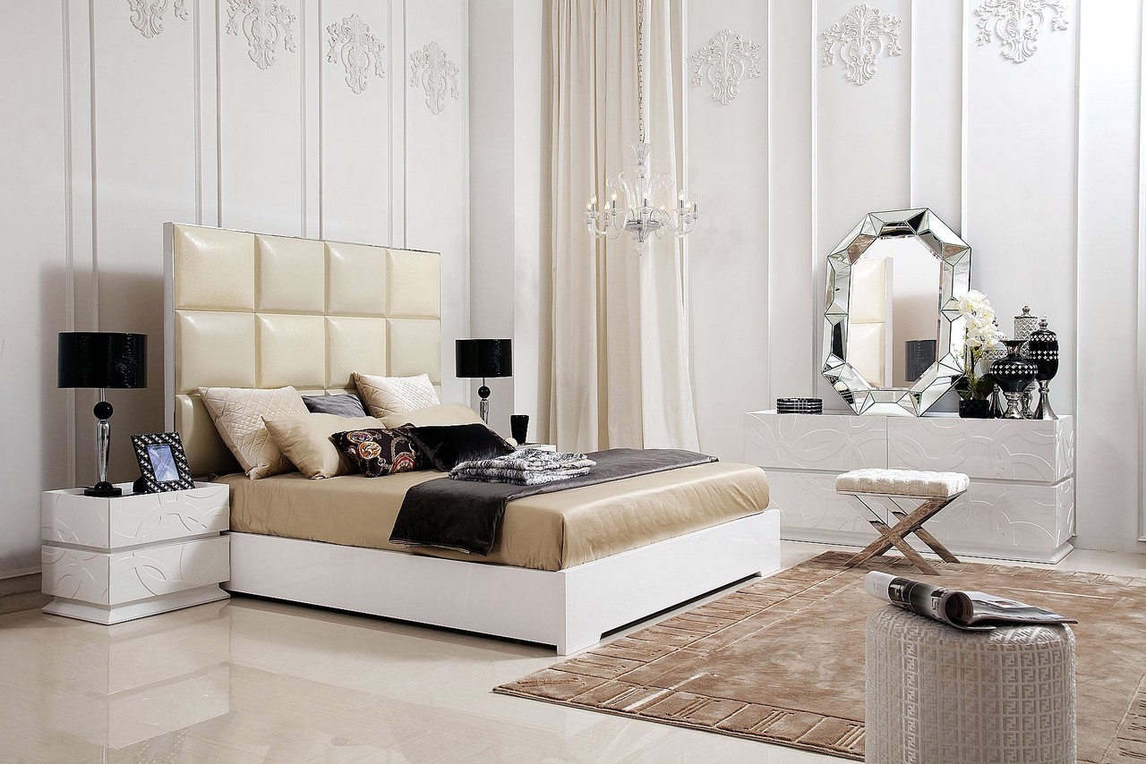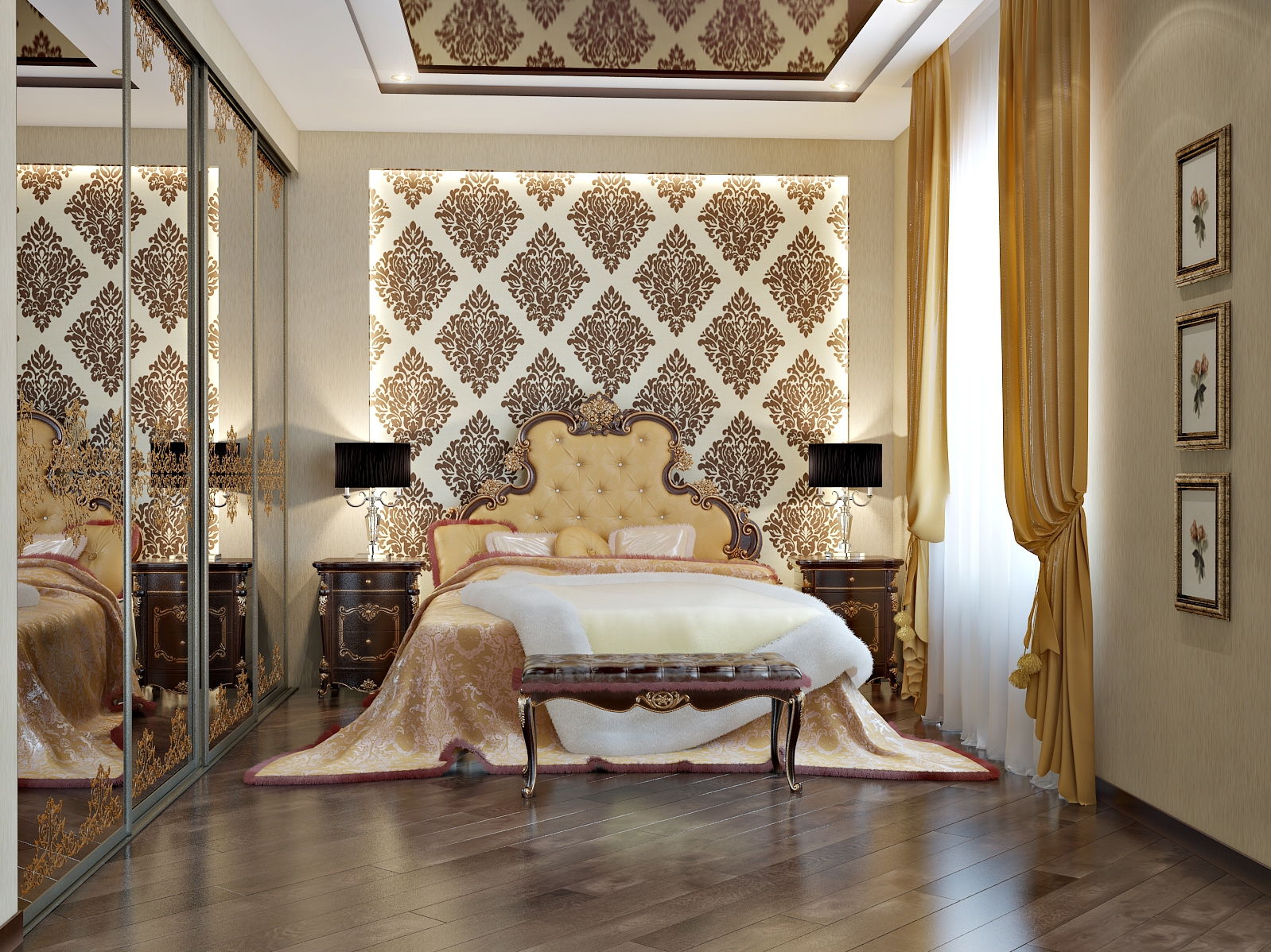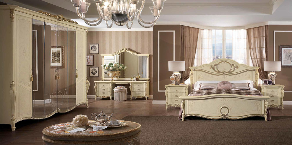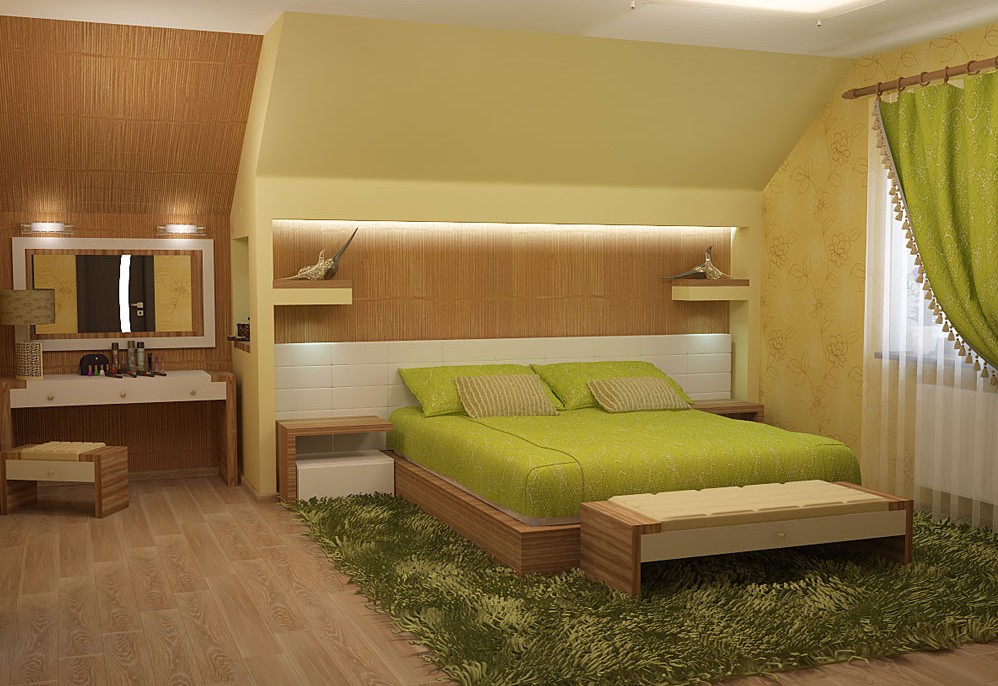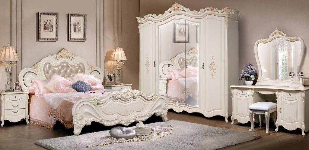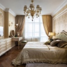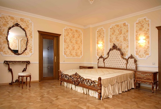 Si la chambre à coucher est grande, quelle que soit la tentation de fabriquer des meubles coûteux, limitez le plus nécessaire. Il est préférable de placer la coiffeuse dans un coin de la pièce et de placer le pouf ou la chaise sous celle-ci. Pour souligner la taille de la pièce, vous pouvez utiliser des couleurs vives dans la décoration des murs. Très bien dans la grande chambre va chercher ensemble de meubles (lit, tables de chevet et une armoire, commode), faites dans le même style.