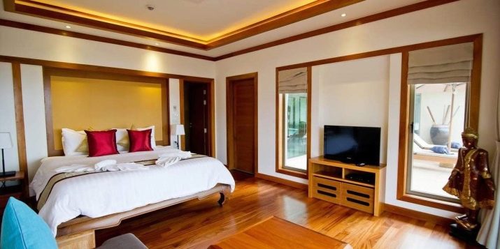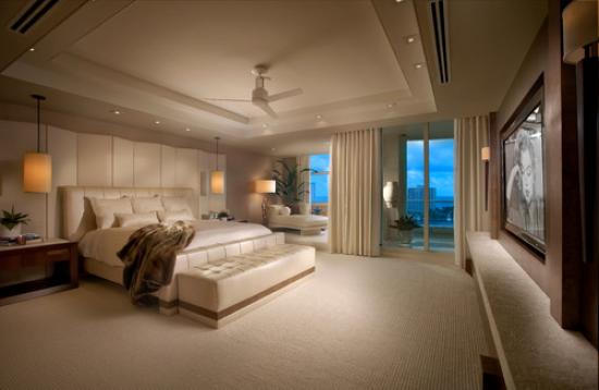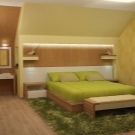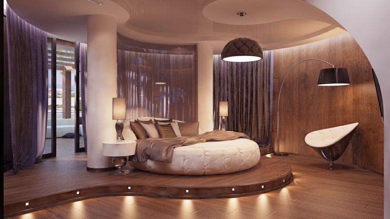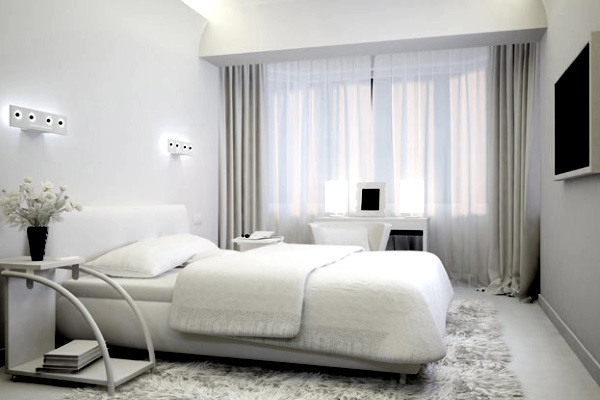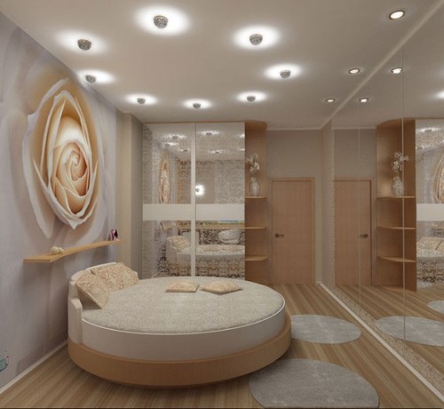 La chambre peut être complétée par des équipements de télévision, audio et vidéo - tout dépend de vos habitudes. Au stade de la conception, il est important de penser à l'éclairage (il devrait y avoir à la fois une source de lumière supérieure et une source de lumière ponctuelle).