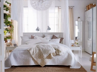 Une autre règle d'or consiste à économiser de l'espace dans la chambre. Avant beaucoup, il y a un dilemme - faire une armoire ou un lit plus. Le choix devrait être fait en faveur du lit.Il devrait être aussi grand que vous pouvez vous permettre en termes de taille de la pièce et de finances. L’essentiel est que vous pouvez toujours ranger le tout dans une petite armoire, mais dormir dans un lit étroit est une véritable torture.