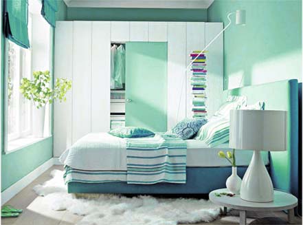 Plus les couleurs des murs et des textiles sont claires, mieux c'est. Nuances idéales de Vastu - verdâtre, bleu clair, rose pâle. Les objets brillants ou même chromés sont autorisés - ils apportent une nouveauté à la relation.