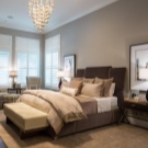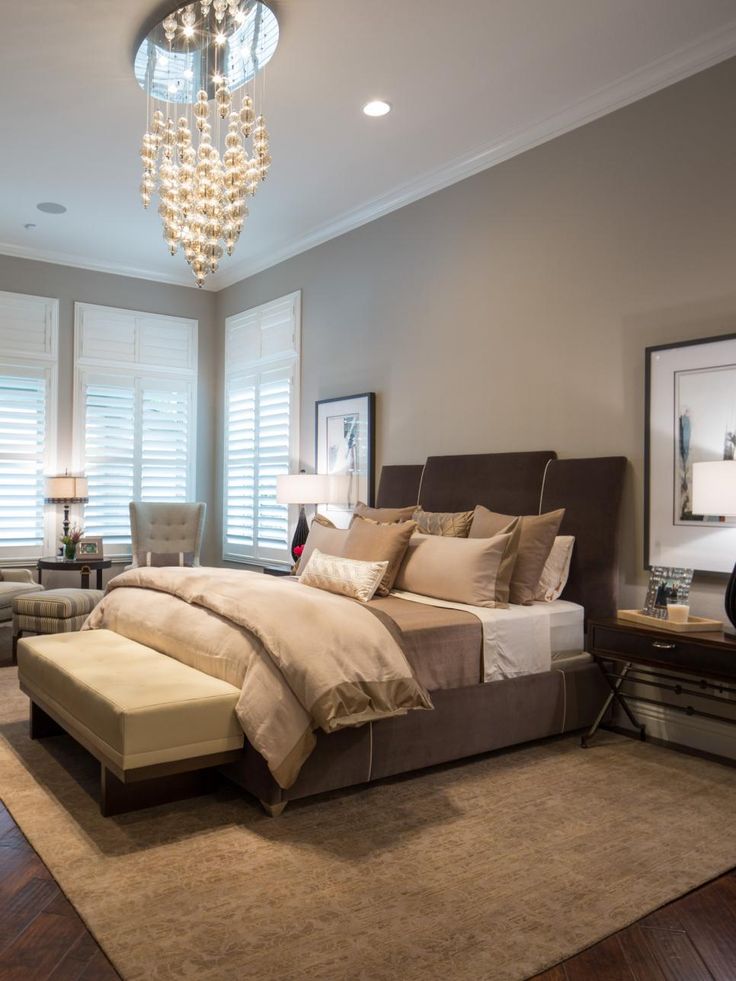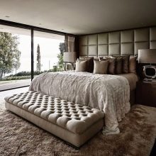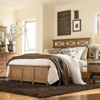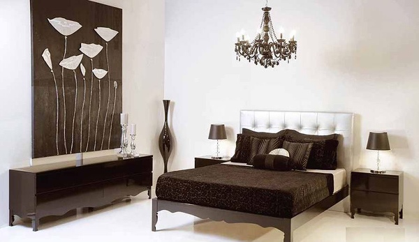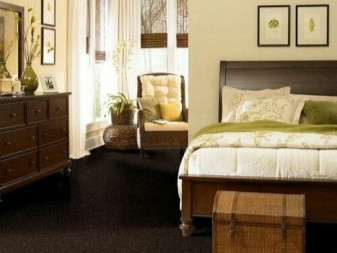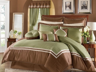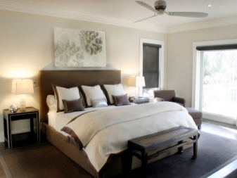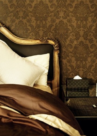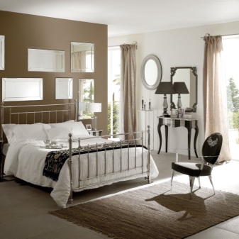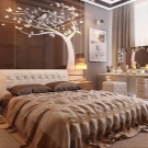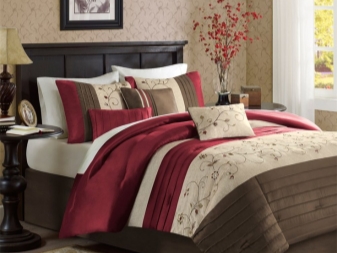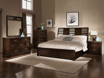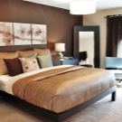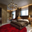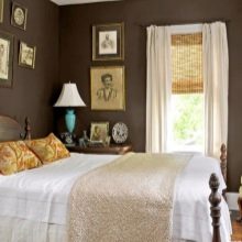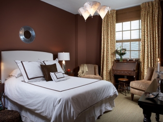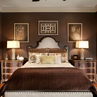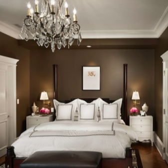 Tout cela devrait être choisi, en tenant compte du style choisi pour la décoration de la chambre marron.