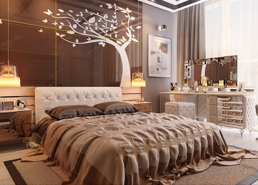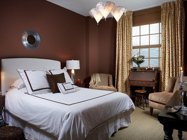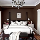 Si vous êtes propriétaire d'une chambre miniature, vous pouvez créer un motif de teinte brune en utilisant le segment de palette de lumière. Pour les grandes pièces, il n'y a pas de tabou dans le choix de couleur, il est permis d'utiliser différentes couleurs sombres, y compris le chocolat et le wengé.La chambre à coucher peut devenir même brun foncé.