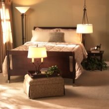 Meubles - une partie importante de l'intérieur, il doit être choisi avec soin. Si votre chambre à coucher a de hauts plafonds, vous devez choisir un mobilier sombre et l’arrière-plan doit être lumineux. L'effet de chambre haute crée un réglage de faible squat.