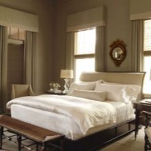 Une petite chambre ne peut pas être sombre, mais ce sont des tons qui serviront d’accents. Si la couleur de la décoration intérieure est beige, trouvez des couvre-lits et des rideaux lumineux, ils peuvent être dans des tons de chocolat. Toutefois, les textiles du même ton que les murs seront plus élégants et l’imprimé ou le motif en seront les points forts.
