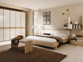Non moins commun est la conception de la chambre à coucher avec les murs et le sol dans une couleur brun clair, chocolat au lait ou autre couleur similaire. Cet intérieur complétera les meubles dans des tons chocolat. Avec une conception à une couleur pour donner de l’expression, plusieurs détails intérieurs doivent être d’une teinte légèrement différente, se différenciant de 1 à 2 tons par rapport à celui principal dans un sens ou dans l’autre.
