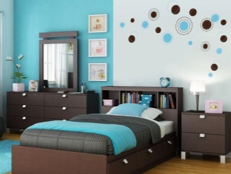 Lorsque vous choisissez une décoration de chambre marron, décidez à l’avance de ce qui sera marron: les murs ou les façades des meubles. Ici, la règle de base est que les meubles clairs sont placés sur un fond de murs sombres et, au contraire, si le mobilier est de tons clairs, le fond est sombre.