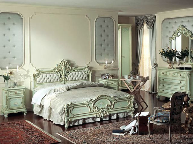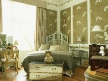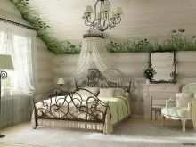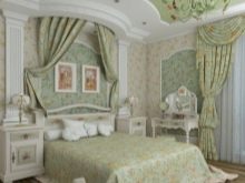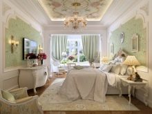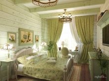 Une décoration douce et romantique dans le style provençal français est parfaite pour une chambre à coucher. Une agréable nuance pistache s'harmonisera parfaitement avec la palette de couleurs de base de ce style. Ce sont des couleurs pastel: lilas, bleu, rose, beige, pêche.