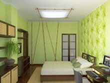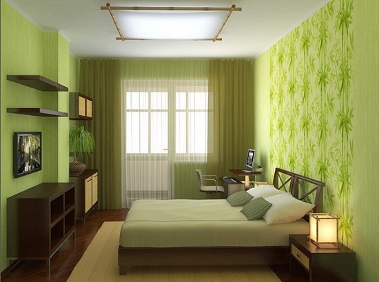 Le style oriental en tant que décor de chambre à coucher gagne rapidement en popularité. Dans ce cas, ton approprié olive ou kaki. Vous pouvez également choisir les couleurs des pierres naturelles: émeraude, malachite, jade. Pour décorer dans le style japonais, il est recommandé de choisir une nuance de "thé vert". Il s'inscrit parfaitement dans la paix et l'harmonie, personnifiées à la japonaise.