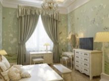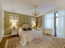 Design classique - l'une des options de design les plus courantes pour les chambres à coucher. Ce style est choisi par ceux qui préfèrent un design universel et non démodé. La couleur vert foncé convient à ce style, aux nuances «fougère» ou «mousse».