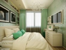 Si vous souhaitez décorer la chambre avec un élément expressif, cette tâche sera parfaitement gérée par des rideaux, des coussins et autres détails. Si vous ajoutez des rideaux vert foncé aux murs vert clair, le décor sera plus beau et plus expressif.