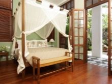 Style colonial élégant et élégant parfaitement combiné à des nuances de vert riches et riches. Cela donnera à l'atmosphère une note de fraîcheur et de naturel. Cette tendance a une élégance classique, mais le nombre d'éléments décoratifs et d'ornements est faible. Pour les couleurs vives n'a pas causé d'inconfort dans la zone de loisirs, ils peuvent être équilibrés avec l'aide de couleurs blanches ou pastel doux.