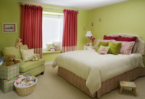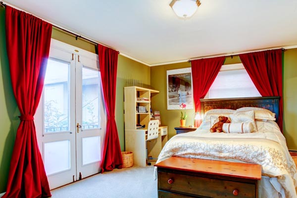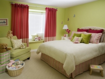 Le rouge et le vert à l’intérieur sont un mélange appétissant juteux. Cette combinaison est parfaite pour décorer la chambre d'un enfant ou d'un adolescent. La couleur rouge affecte le psychisme de manière excitante, de sorte que son nombre à l'intérieur de la chambre à coucher avec des murs verts devrait être minimal.