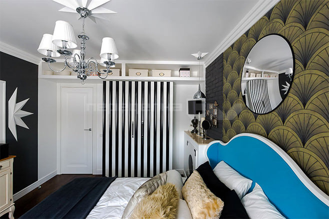 Pour souligner l'élégance caractéristique de l'Art Déco, vous pouvez choisir un papier peint vert avec un motif expressif. Si la pièce contient des meubles élégants avec des poignées bouclées et d’autres éléments, il est préférable de choisir du papier peint ordinaire. Ils équilibreront les éléments et les décorations.