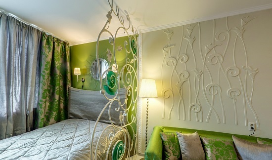 Merci à toutes les caractéristiques ci-dessus, cette couleur est parfaite pour la chambre à coucher. La couleur verte est associée à la nature, à l’été, à la vie et à la fraîcheur. Il est la personnification de la paix, de la bonté et de la tranquillité. Les psychologues rapportent que le manque de vert à l'intérieur peut causer de l'angoisse et de l'irritation.