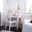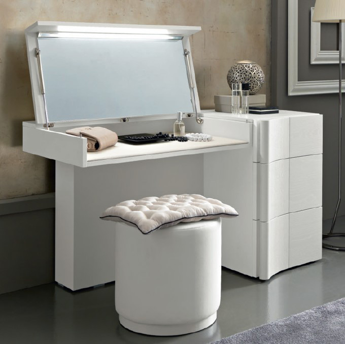 Si les dimensions de votre pièce ne vous permettent pas d'installer une coiffeuse blanche de tailles standard, vous pouvez acheter un attribut plutôt petit, tout en conservant sa hauteur standard.