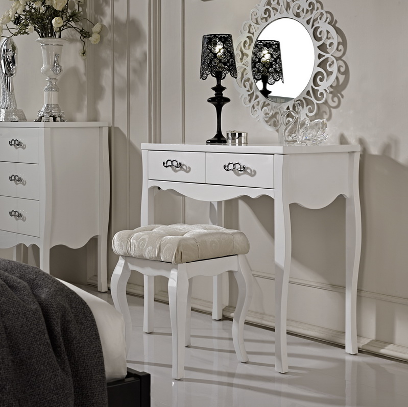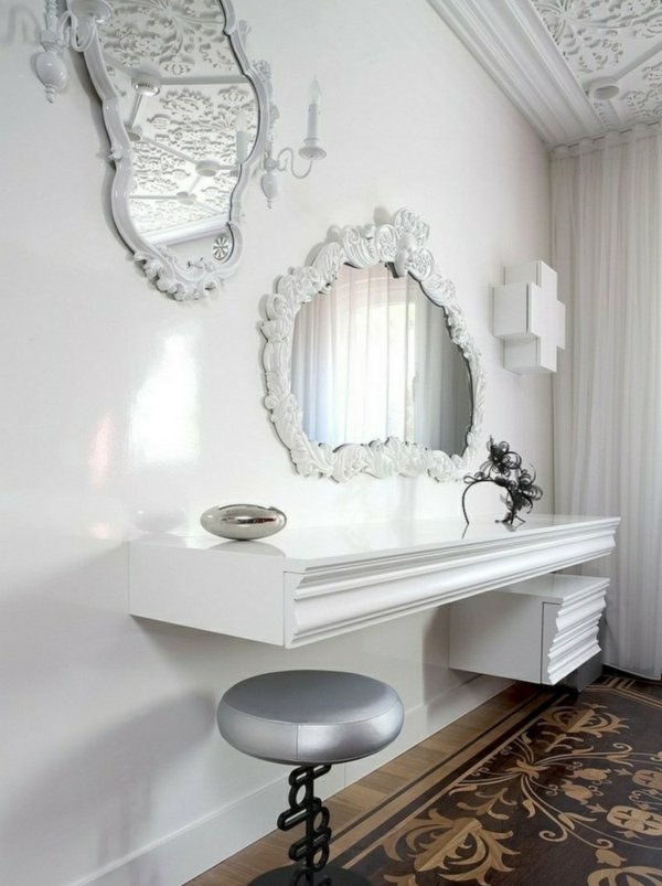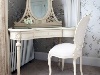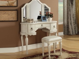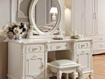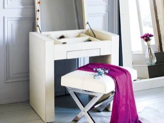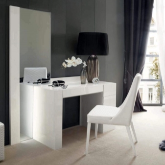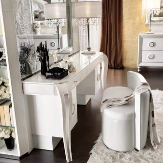 Coiffeuse blanche - un meuble assez populaire. On le trouve assez souvent dans les chambres à coucher, meublées dans un style classique, mais dans les intérieurs modernes, ce produit semble tout à fait approprié.