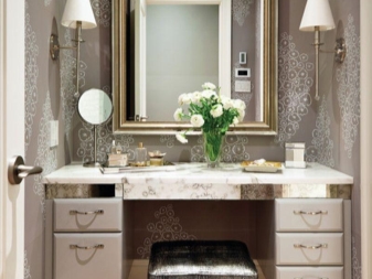 Mais la conception avec miroir intégré présente un inconvénient. Ce meuble occupera espace importanttandis que la table séparée et le miroir suspendu aideront à ne pas occuper les mètres carrés en excès.