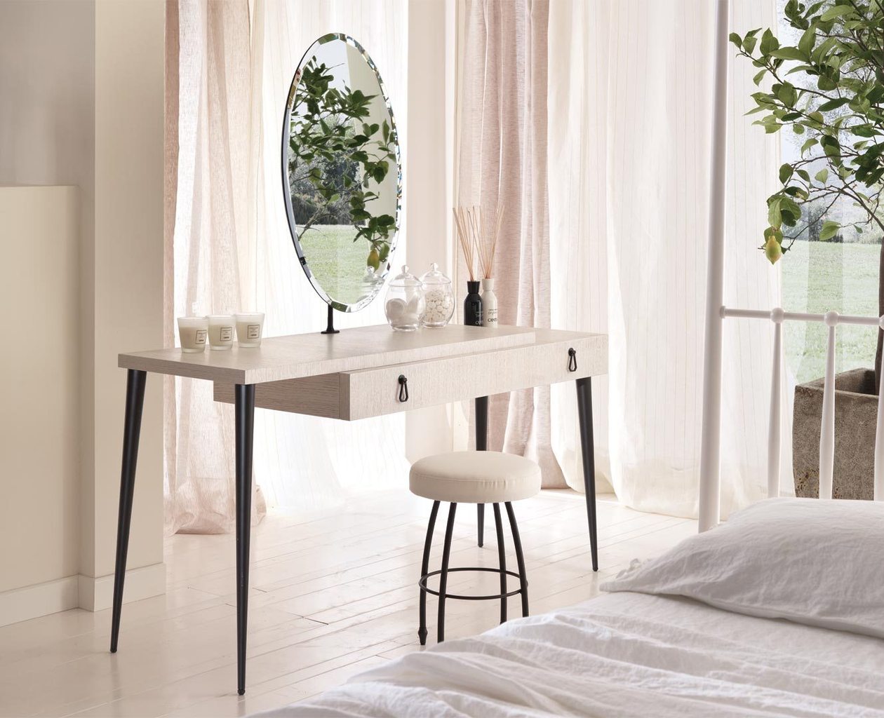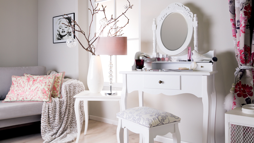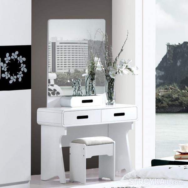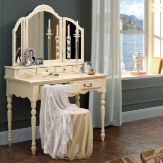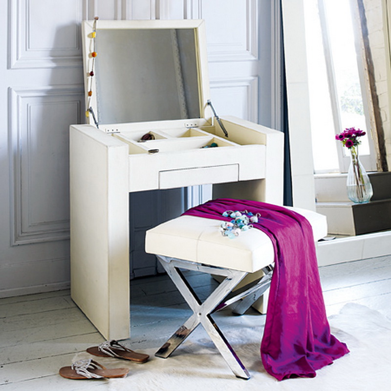 Pour les petites chambres, une excellente option serait une coiffeuse avec un miroir pliant. À l’état fermé, c’est une table ordinaire sur laquelle, par exemple, vous pouvez travailler. Si vous la mettez sur la table, vous obtenez une coiffeuse à part entière avec un miroir.